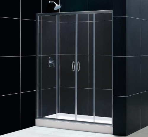 Cheap DreamLine complete shower door and base kit DL-6016C-04FR. 60''W x 72''H, center drain, brushed nickel finish, frosted glass Features